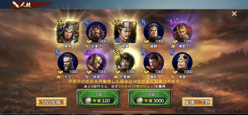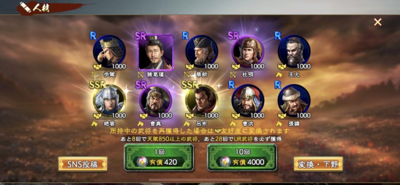 ガチャのメインは「大求賢令」「超求賢令」です。