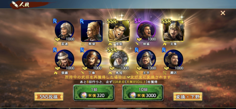 そのほかだと、求賢令も回しやすいですが、回すために必要な宝玉は他の用途にもたくさん使うし、ガチャを回しても旨味があまりないのでもう回してないですね。