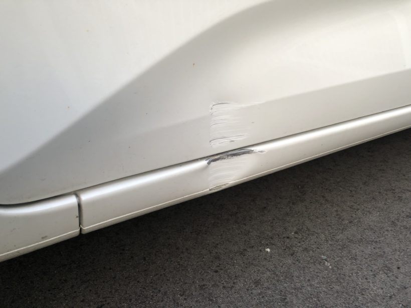 写真の通り助手席の下の方をこすって凹んだわけですが、後部座席側も奥さんがこすったので二か所傷ついています。