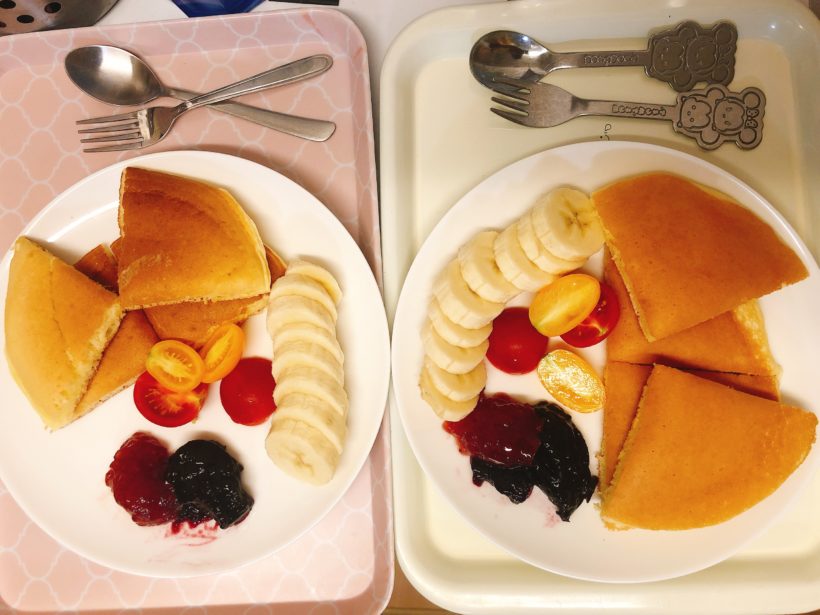 子供がお風呂とかおままごとで「パンケーキやけたよー」とか言って遊んでいたのでパンケーキやいて上げたら喜ぶと思って出してあげましたが、長女は美味しそうに食べてくれました。