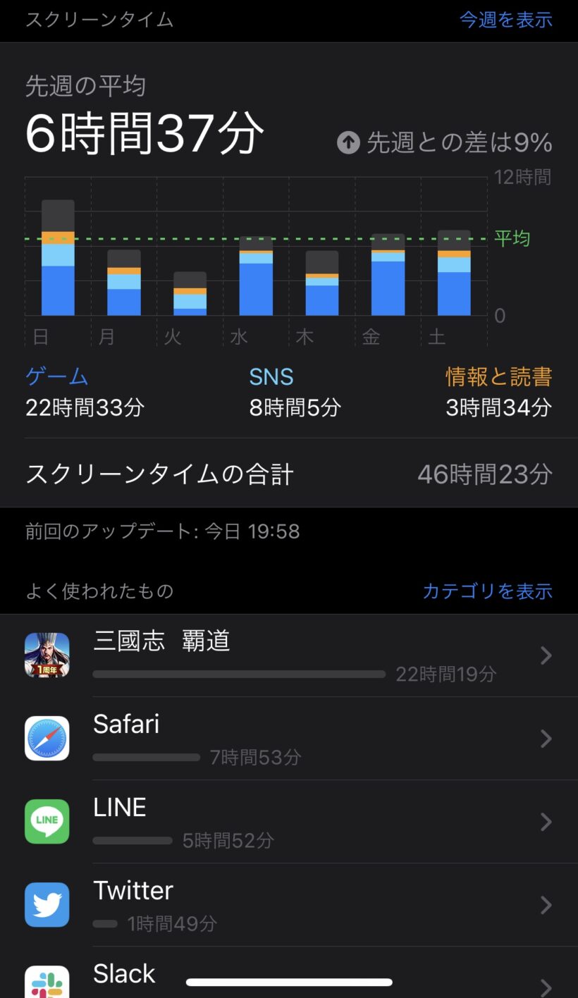 要は、ゲームのプレイ時間がやばいという話でした。ゲームしかしてないやんけ…みたいな状況になっていてみんなでこの利用時間内訳を見せ合っていたんですよね。