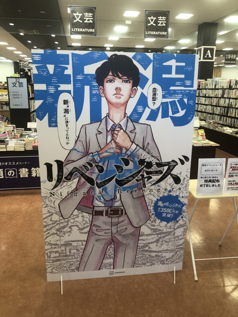 そんな東京リベンジャーズのパネルが本屋に行ったらありましたがよく見ると、「”新潟”リベンジャーズ」になってる。