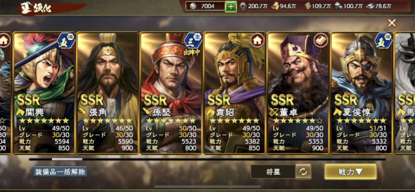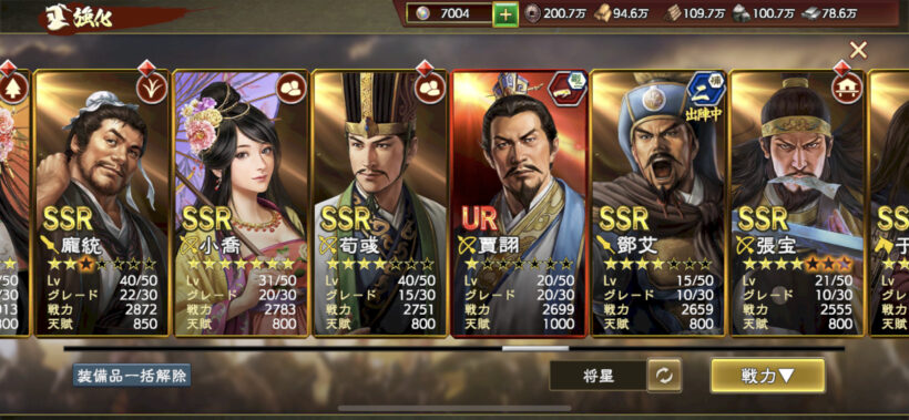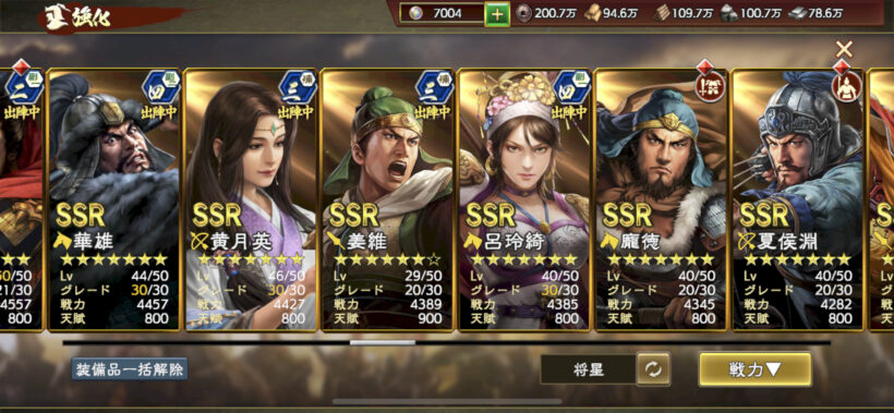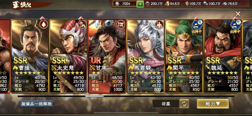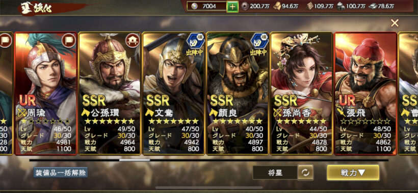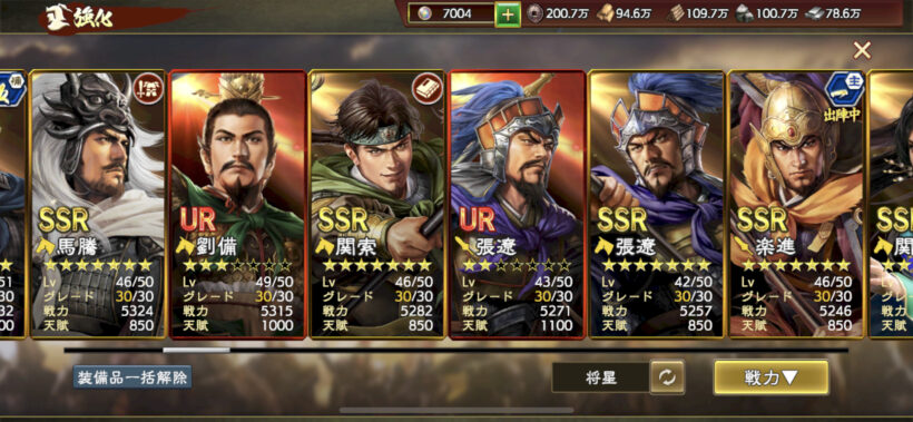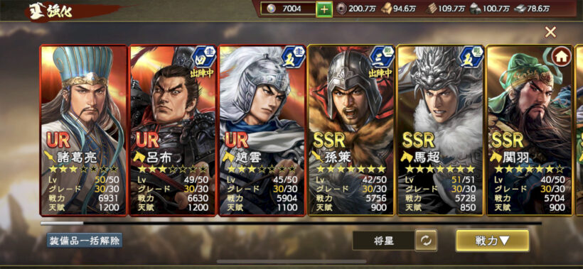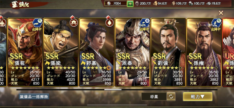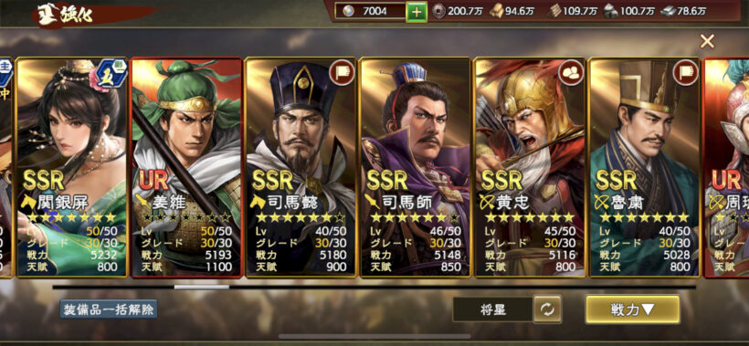 武将値が伸びなくなってきていますが、URをどれくらい星重ねられるか次第かなと。