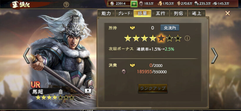 【三國志覇道】UR夏侯惇星5、UR馬超星5でフィニッシュ!