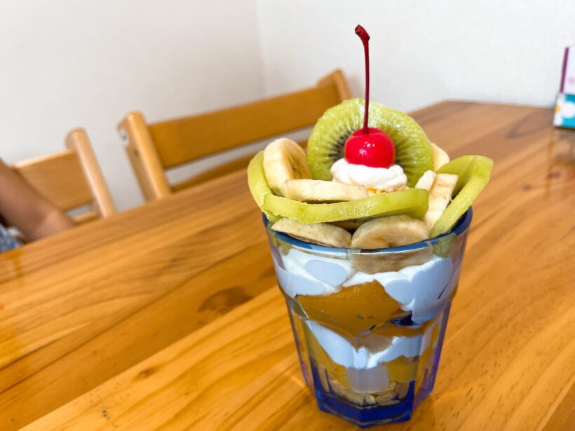 花弁のようにキウイを乗せた辺りは次女がやりましたが、なかなか盛り付けセンスを感じます。上野写真は自分が自分で盛りつけたパフェです。