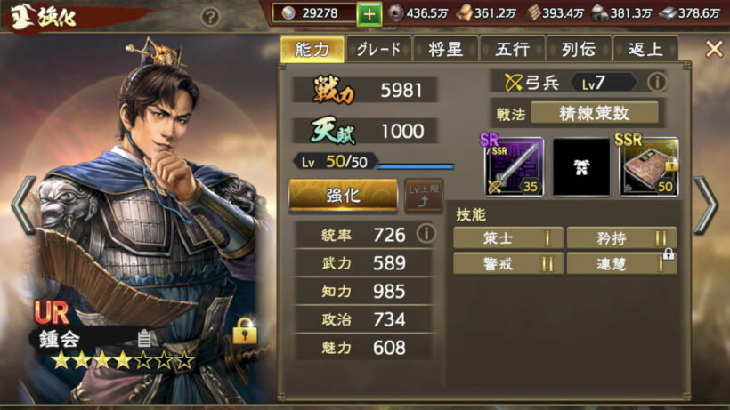 鍾会が天部1000、鄧艾が天部1100なので鄧艾のほうが出にくいはずですが…ある意味引き強かったかな?