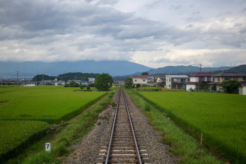 海の上を走る『千と千尋の神隠し』の海原電鉄を彷彿とさせる、日没時に列車が水田の間を走っている新潟の幻想的な光景pic.twitter.com/gWGbOiRuze