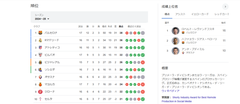 今節はアトレティコも逆転での勝利を収めたため、首位バルセロナとの勝ち点差を縮めています