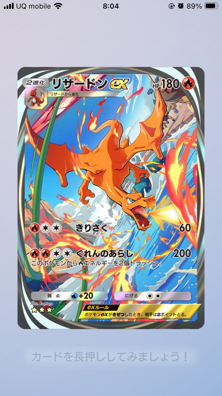 この間普通のexリザードンを引きましたが、続いて星3を引けるとは思ってなかった
