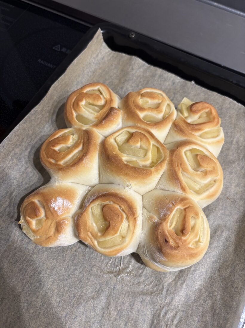 とりあえずシナモンロールやピザ、チーズナン、塩バターロール、りんごパン、フォカッチャ、ソーセージパン、コーンパン、ドライフルーツ入りパンと一通り作ってみました