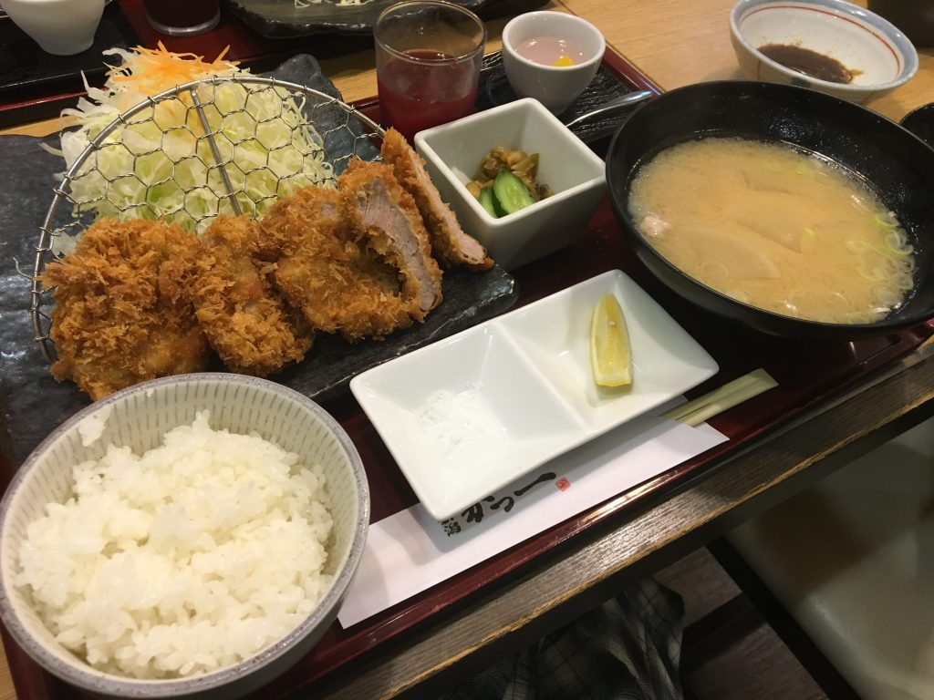 ごはん、豚汁(味噌汁)、きゃべつはおかわり自由。