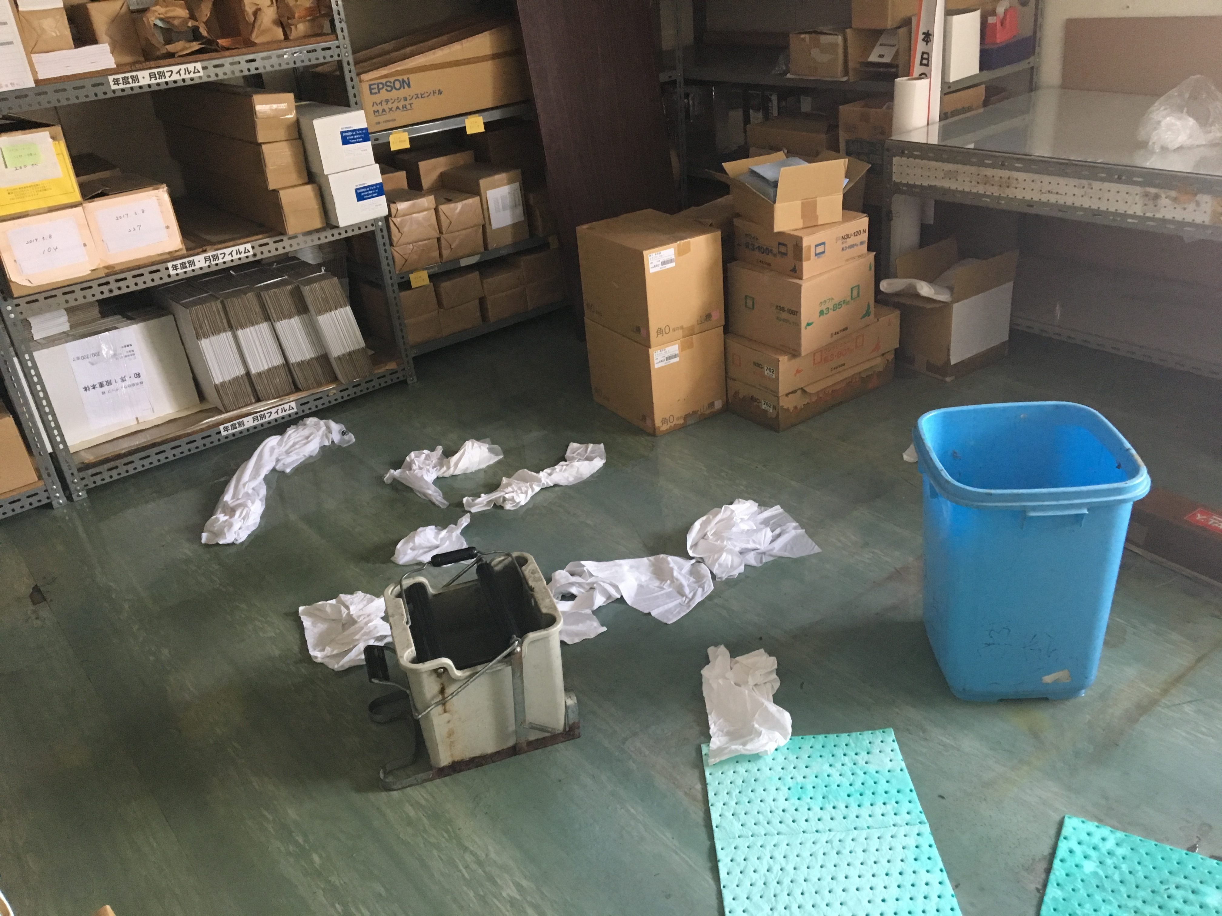 幸い、インクジェットなどの機材には水はかからなかったようです。