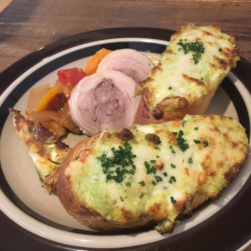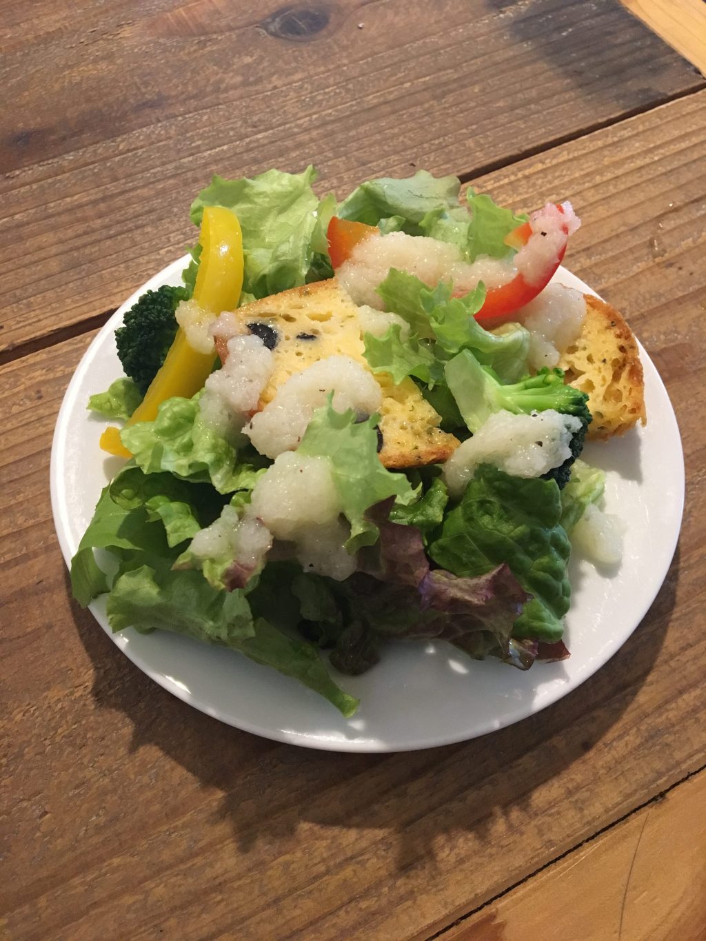 サラダにパウンドケーキのような甘いパンが入っていたのが初めてで、斬新でした。