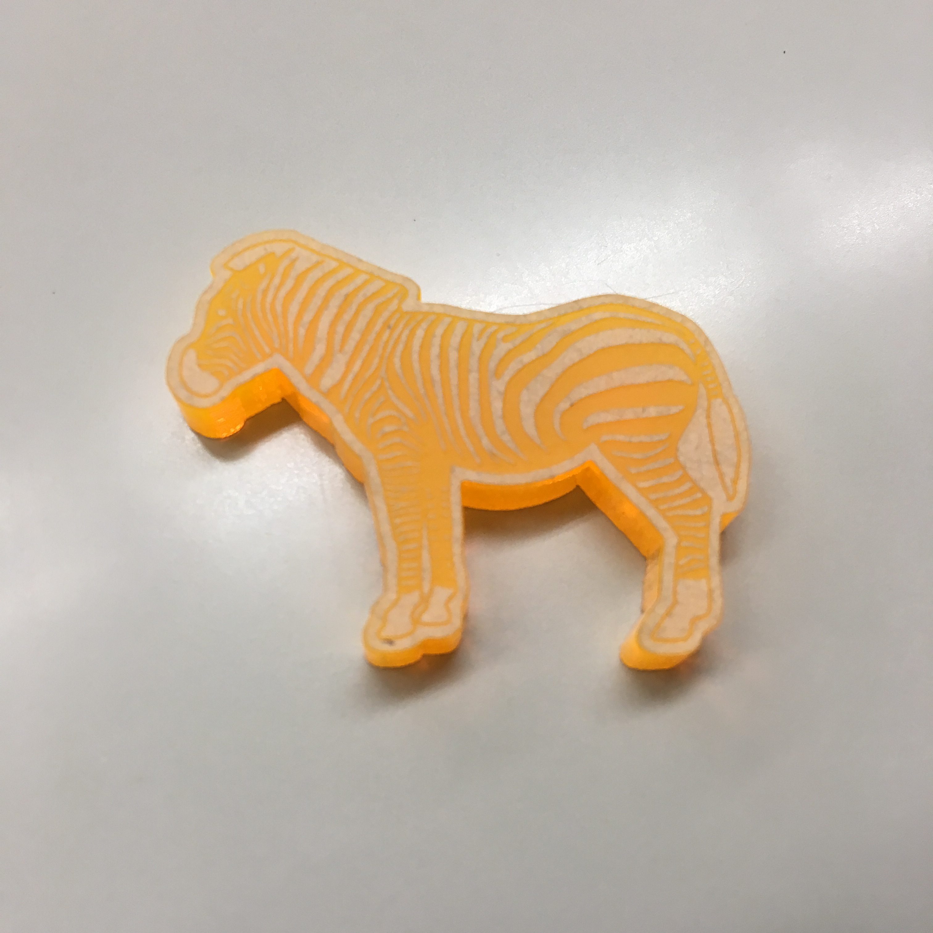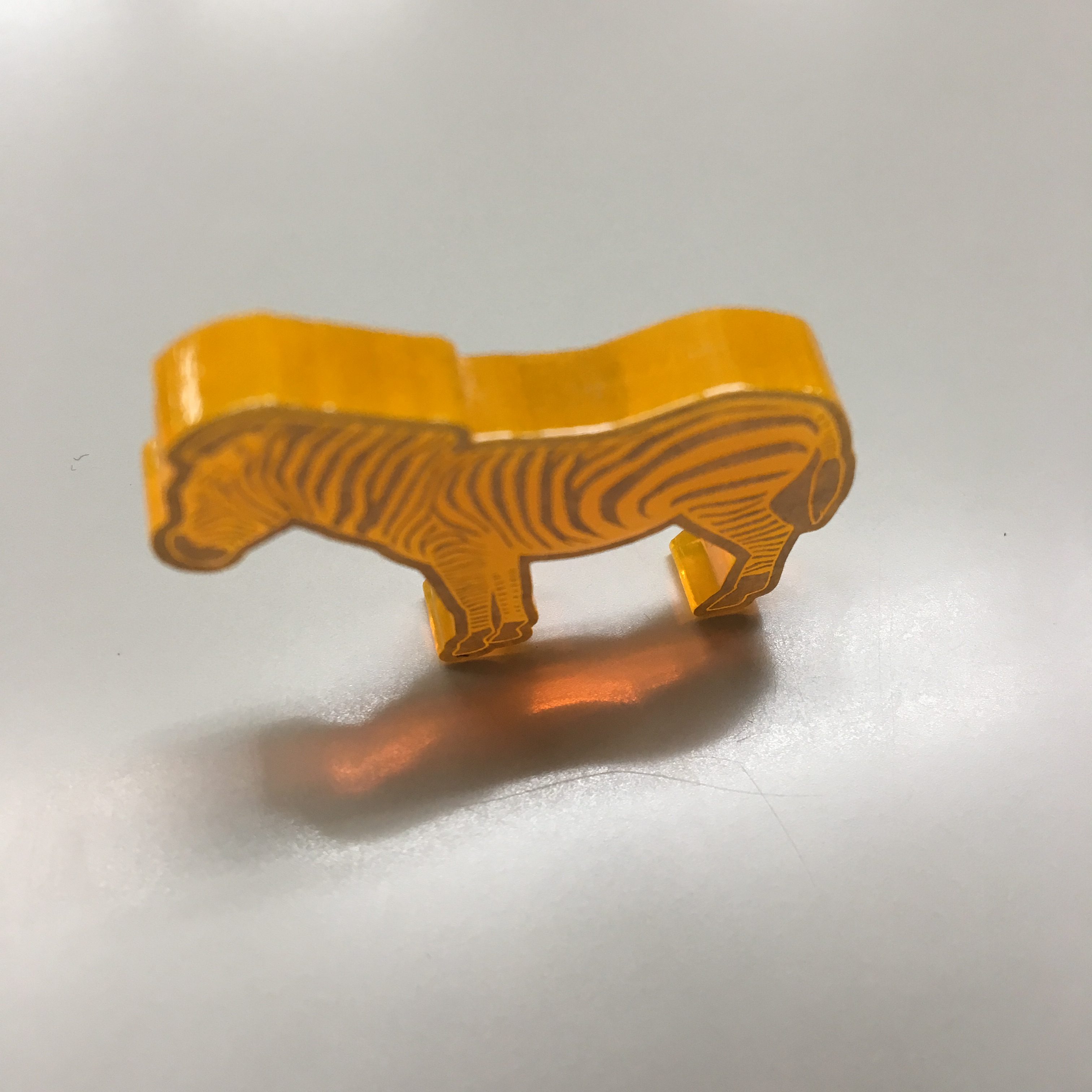 物はレーザー加工機の写真は撮ってこなかったし、そんなものを見せられても意味ないと思うので、加工したサンプル品をもらってきたものをUPします。