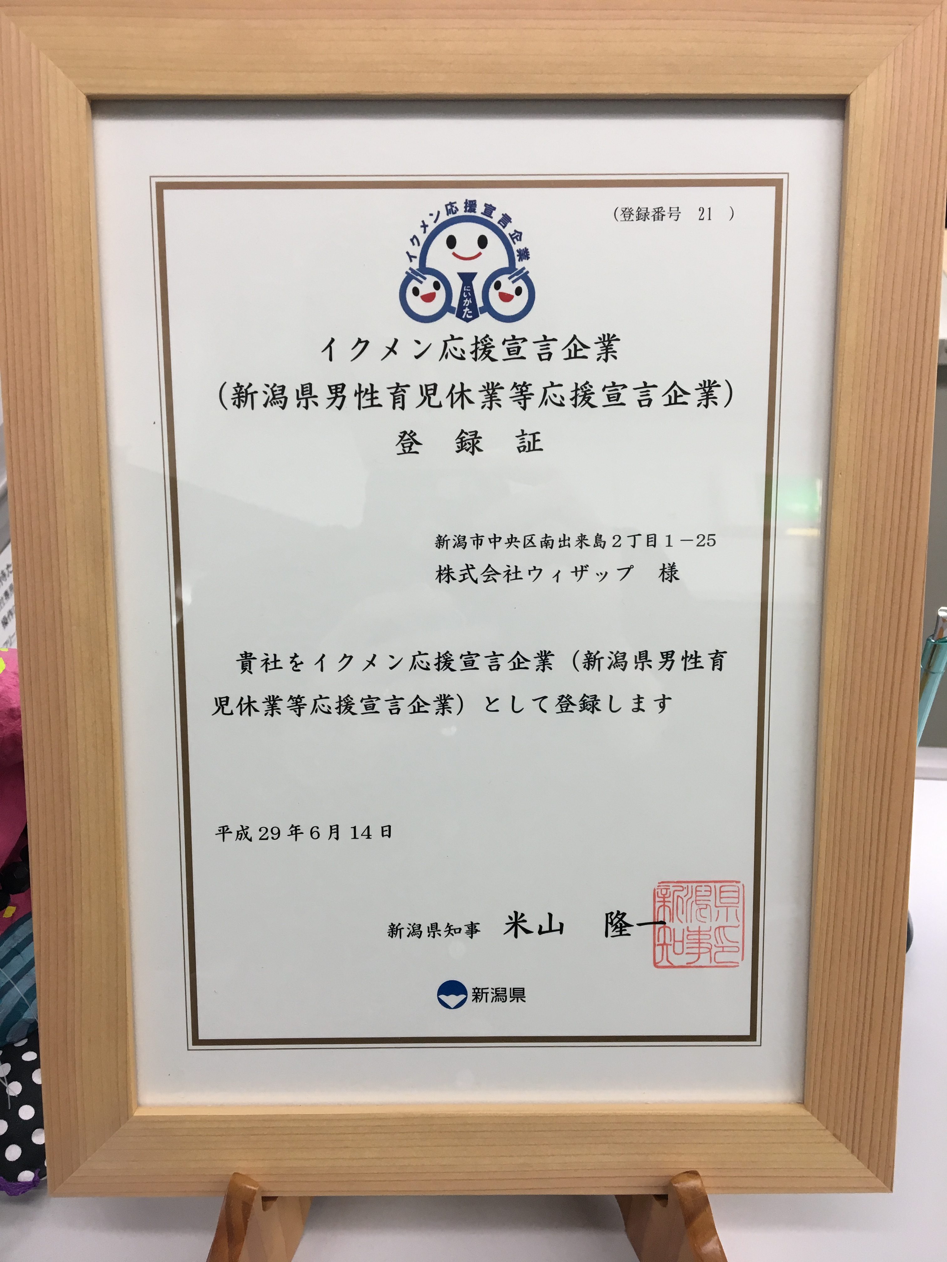 つまり、弊社は「イクメン応援宣言企業(新潟県男性育児休業等応援宣言企業)」です。