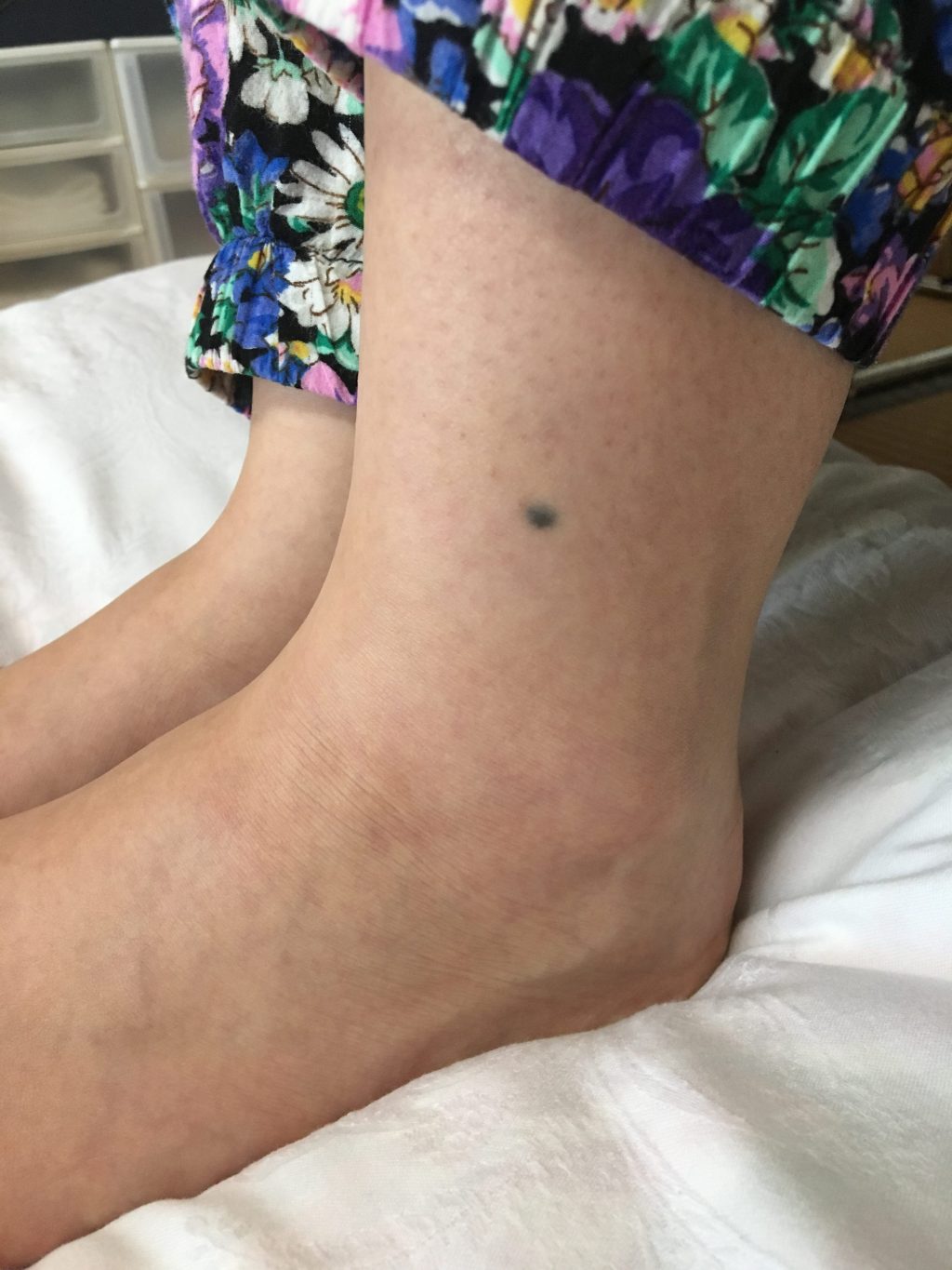 嫁さんの左足の黒いほくろのようなものが、娘の左足の同じ位置にあるんです。