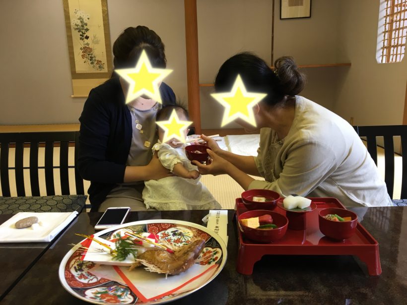お食い初めのやり方、手順などはよくわかっていなかったですが、ネットで検索したものにならって行いました。