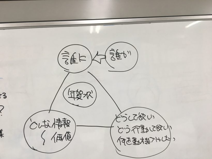 「誰に」「どうしてほしいか」「これによってどんな情報、価値を受けては得られるか」3点を明確にしなければいけないですね。