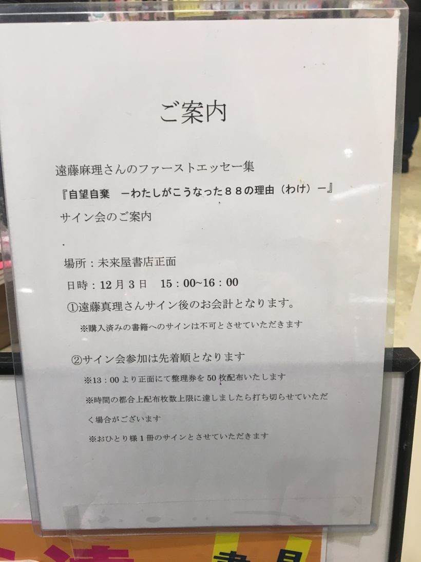 今回、初の出版本「自望自棄」発売記念サイン会が開催されるとのことで、行ってきました!