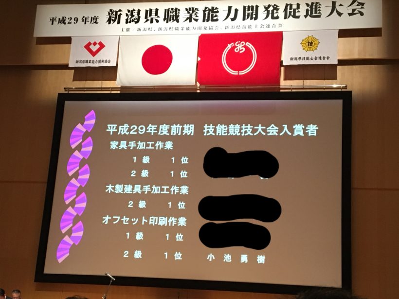 先日、印刷技能士2級を受かったのですが、新潟県内で成績が1位だったということで今回参加となりました。