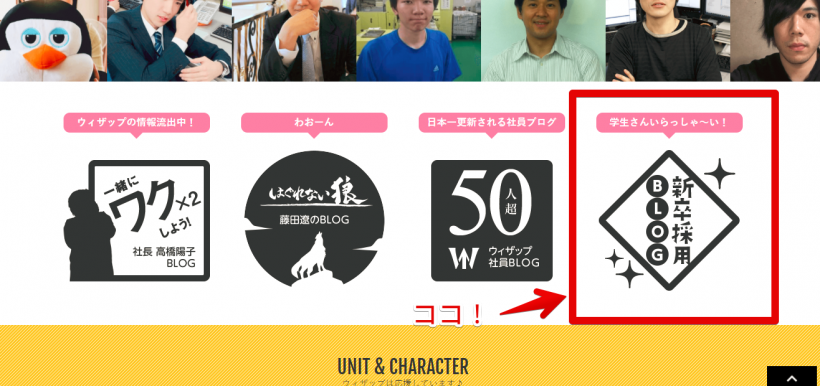 ブログのリンクはウィザップHPのホーム画面に貼ってあります。