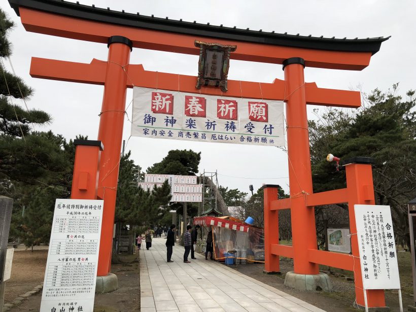 場所は白山神社です。新潟市内は大体、白山神社、護国神社、弥彦神社、地元の神社にお参りに行く方が多いのではないでしょうか?私は実家が白山神社派だったので自然と白山神社に行ってきました。