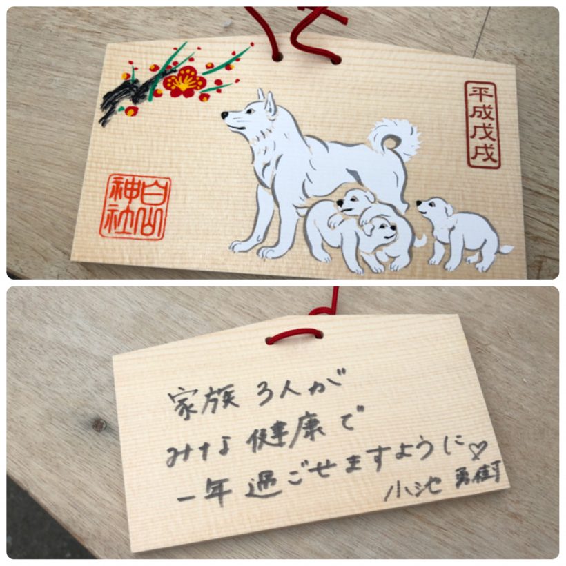 戌年ということで、娘も生まれたし子犬も描かれている絵馬を選択。
