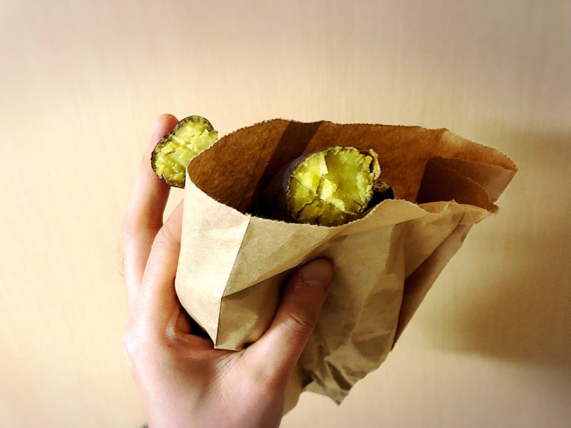 頑張って走って追いついて、買ってきましたよ。石焼き芋を。