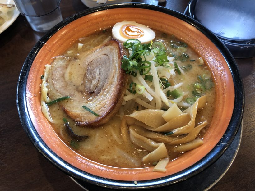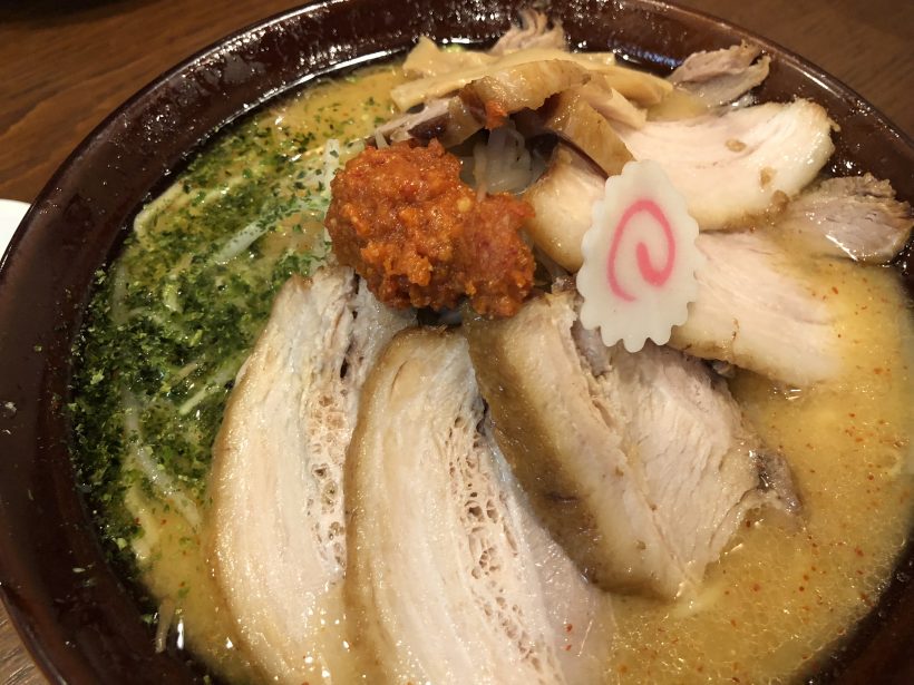 炙った特大ちゃーしゅーが1枚デフォルトでついてきます。しょっぱい系の味噌ラーメンが新潟は多い中で、ここのスープは甘目。