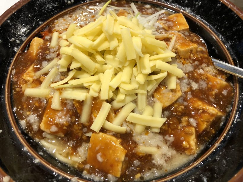 ここはスープが無いのでマーボーが薄まることなくて好きです。チーズをトッピングするとマイルドになって辛みが緩和されます。