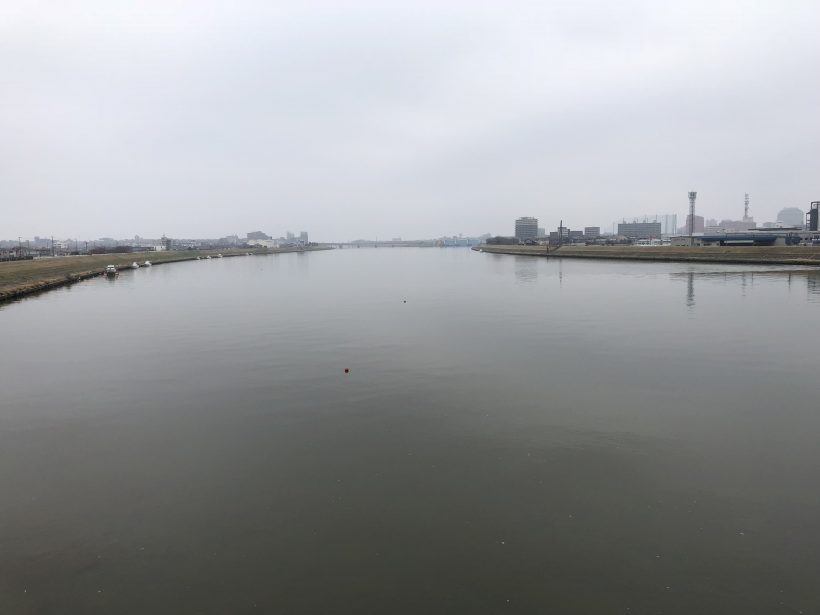 日本一長い信濃川。あいにくの曇り空ですが、風が冷たくて気持ちよかった。花粉が無ければもっと良かった笑。