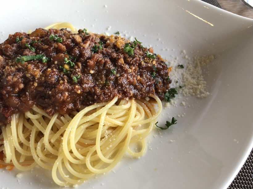 ボロネーゼはワインが効いていて、酸味が強い印象。今まで食べたことのないボロネーゼせすが美味しかった。