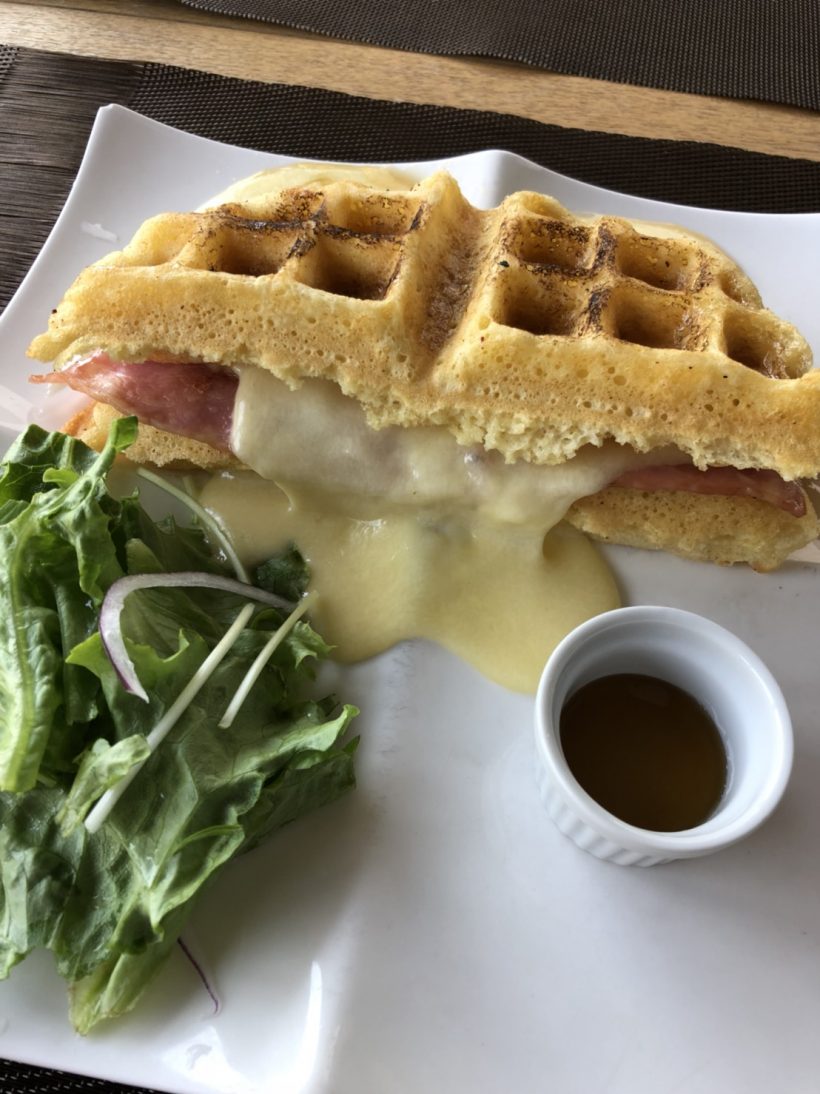 ワッフルはしょっぱい具材が入っていてこちらも初めて食べるワッフルでしたが、とても私好みでした。