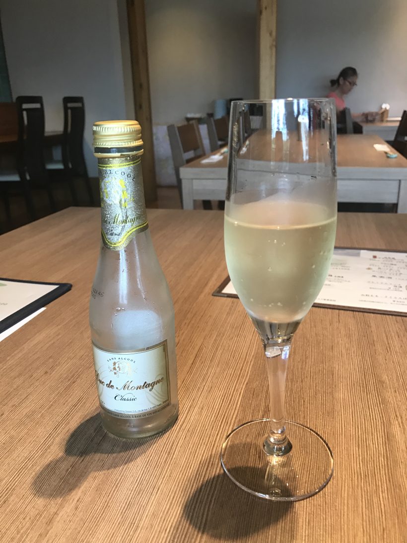 気分だけでも味わおうと、ノンアルコールのスパークリングワインで乾杯!