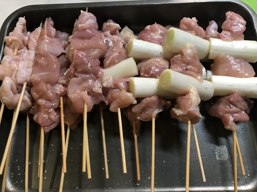 前回もやりましたが、鶏肉を買い、串に刺して焼き鳥にします。
