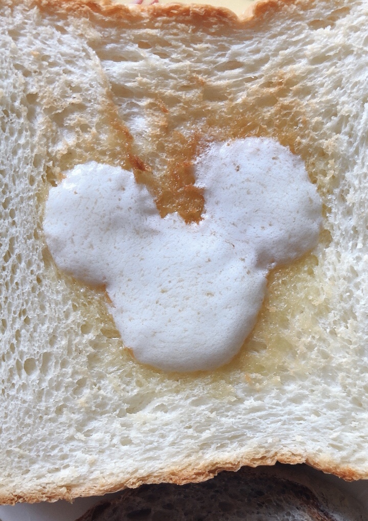 バターを塗ったパンをトーストしたら、何と偶然にも面白い形で焼けました。