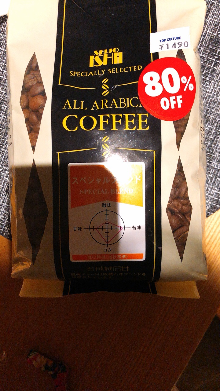 そこでいつもなら500g1500円ほどするコーヒー豆が、なんと80%オフ。