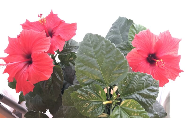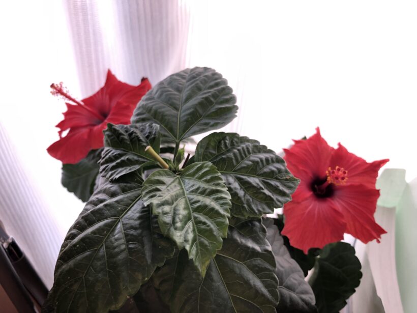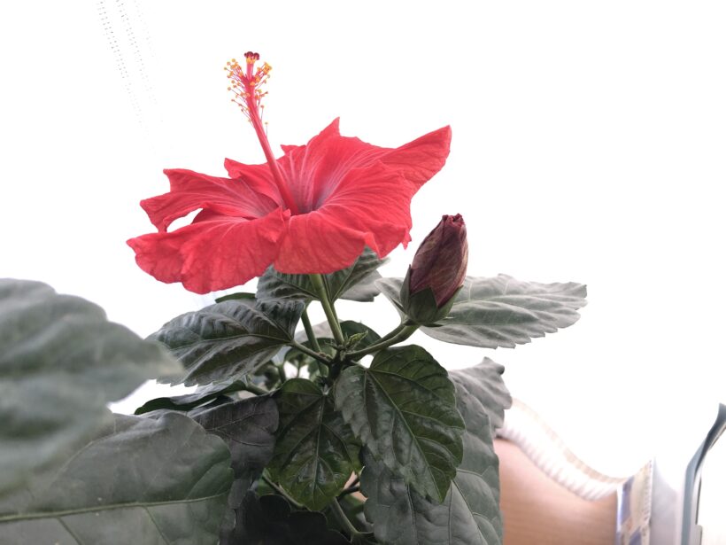私の部屋に置かれているハイビスカスの鉢の、花が咲いたんです。