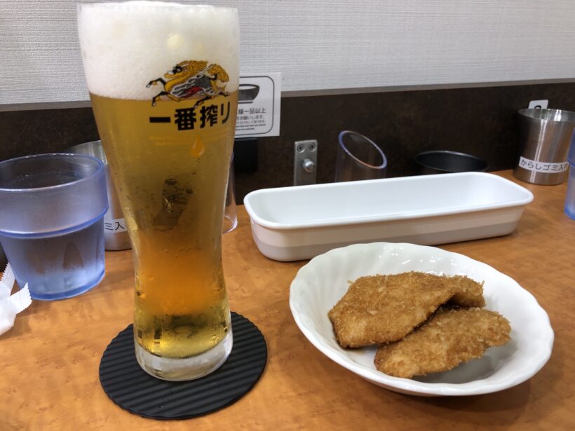 立ち飲みでしたが、夕暮れに飲むビールは気分がいい。
