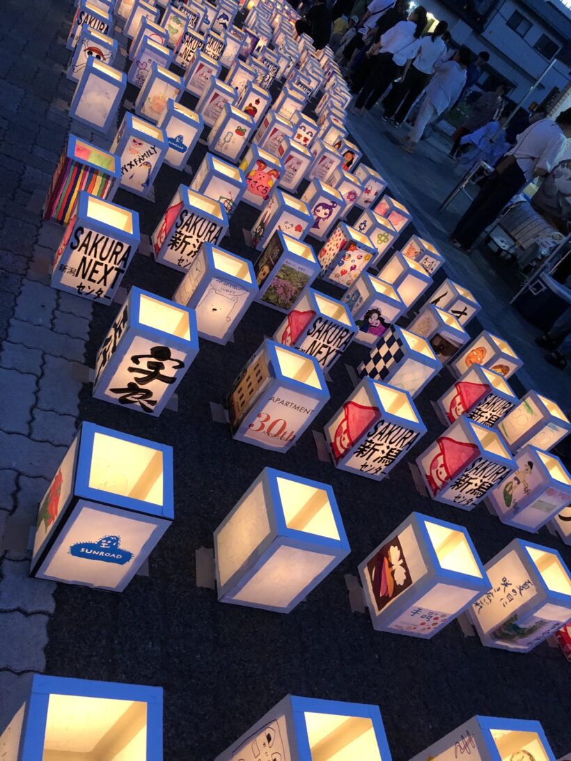 薄暗くなってからは、同じ灯籠も雰囲気がかなり変わりお祭り感が増しました。