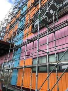 今日、ちょっと会社の中が明るいな~と思っていたら、外壁を覆っていた網を取り外していました。