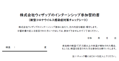 弊社も開催すると決めたのであれば、安心してご参加いただけるように、インターンシップに参加する際には学生さんに必ず「誓約書」を記入していただいています。