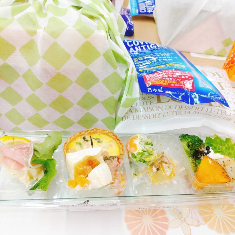 机の配置を変え、お弁当やオードブルを注文し、飲み物も用意しています。