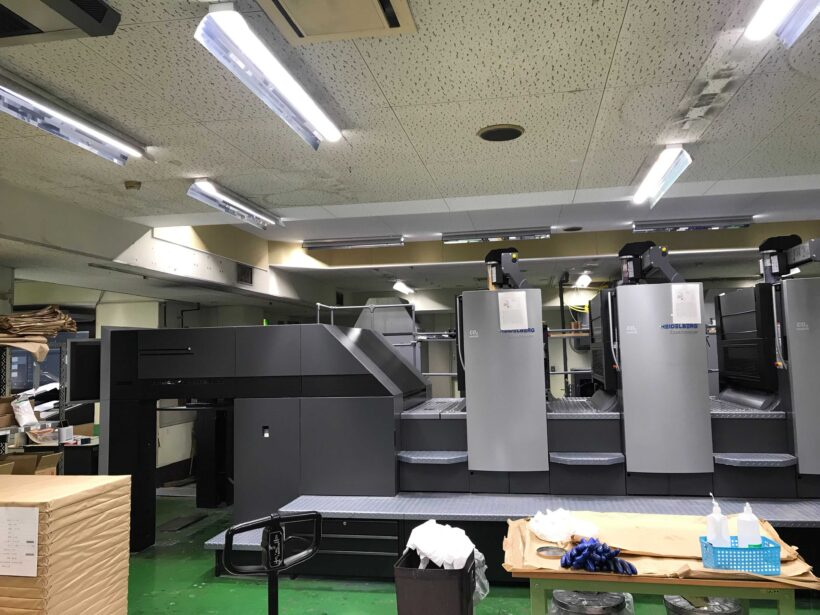これまで活躍してくれていた4色機(4色刷りができる印刷機、もといフルカラー印刷ができる機械)2台を嫁にやり、新しい4色機を迎え入れたのでした。