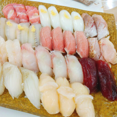 覚えているのはイカ、ホタテ、クエ……炙りのどぐろ……大トロ、中トロ、漬けマグロとか……です。