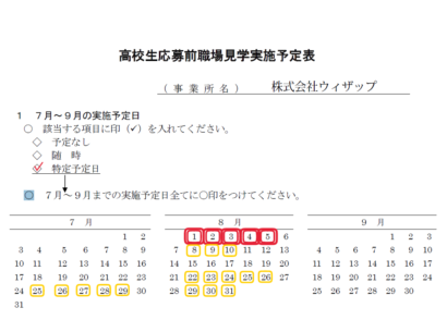 9月に応募と選考が始まるのですが、高校生の夏休み期間を主に利用しながら選考に応募しようか検討している企業へ見学する機会を設けています。