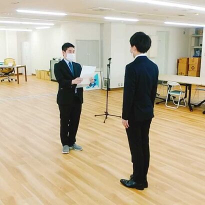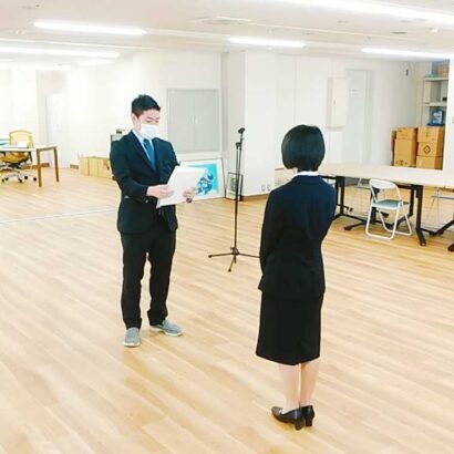 今年の内定者は全員高校生だったため今まで接触ができず、今回の入社式で初めて社員の皆さんと顔を合わせました。