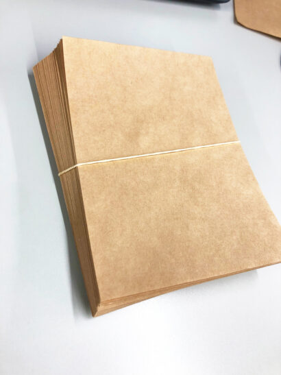 当然印刷につかう紙を仕入れているワケですが、そのワンプの紙がこのクラフト紙みたいな素材です。