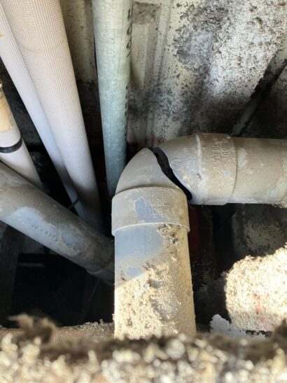 こちらはホース型のパイプ(ドレーンパイプ)を使うことで修繕した模様です。