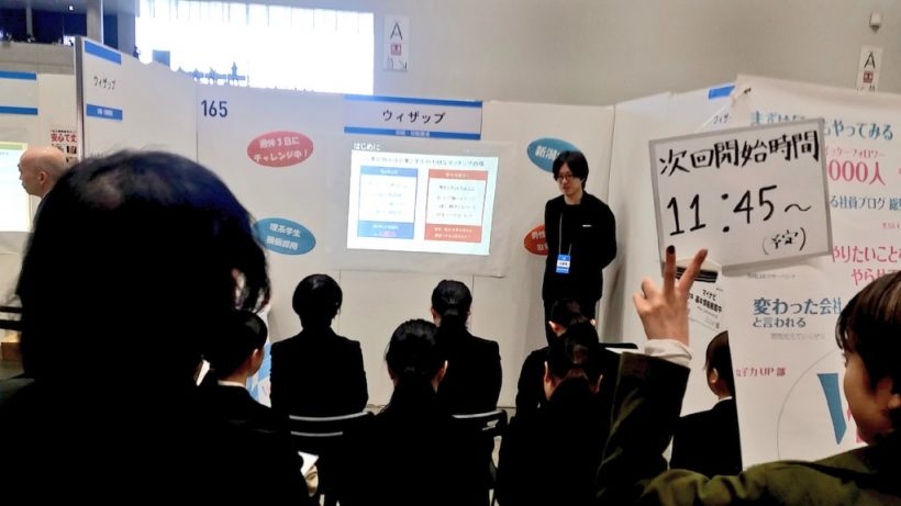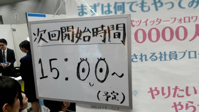 前日の新潟大学の合説で「内容同じなので、比較的空いてる夕方お話に来てください」とアナウンスしていましたが、本当に来てくれて嬉しかった。就活は人生設計も兼ねていると思うのでいろいろ悩むことはあると思いますが、たくさん考えて納得いく結果を出してほしいと思います。